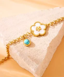 Il suo delicato design a forma di trifoglio bianco simboleggia fortuna e prosperità, aggiungendo un tocco di fascino e raffinatezza al Suo polso.